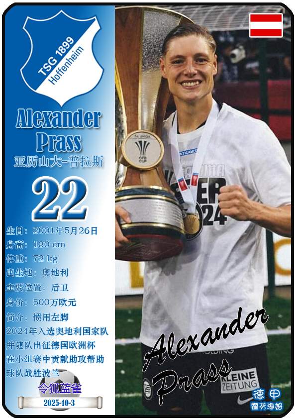 Câu lạc bộ bóng đá Hoffenheim ở Bundesliga được thành lập vào năm 1945 và có lịch sử 80 năm. Kể từ ngày 3 tháng 10 năm 2025, huấn luyện viên trưởng của đội là Christian Ilze, và đội có những cầu thủ như Ihelas Bepo, Leon Avdulahu, Finsnick Aslani. Vấn đề này hiển thị 21 cầu thủ của Câu lạc bộ bóng đá Hoffenheim ở Bundesliga dưới dạng thẻ sao (được sắp xếp theo số Jersey):