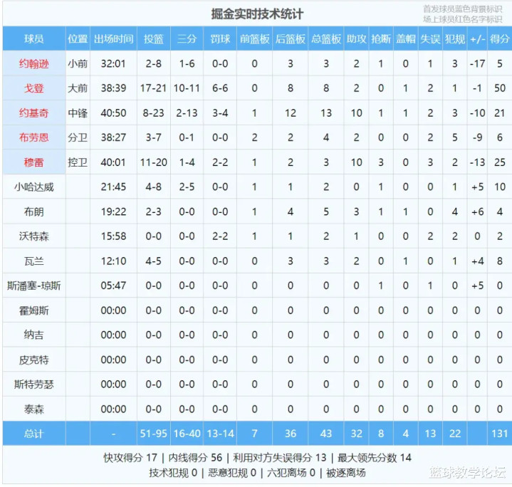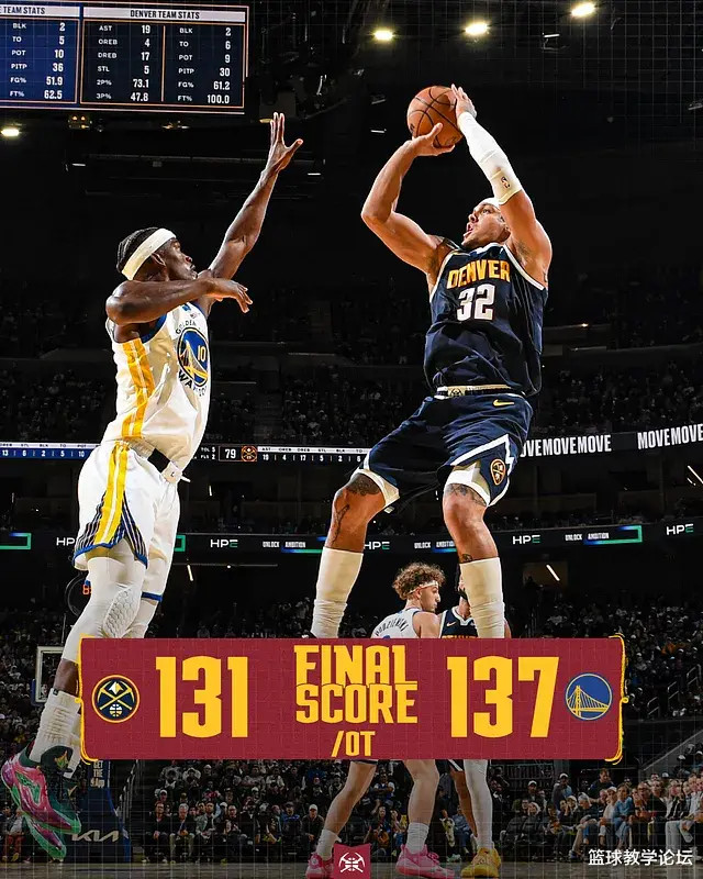 Jokic không có tinh thần chiến đấu và thường xuyên bị Curry nhắm tới trong những pha phòng ngự chặt chẽ. Trong chiến dịch này, thầy Yue đã thực hiện 8 trong số 23 cú sút, 2 trong số 13 quả ba điểm và 3 trong số 4 quả ném phạt. Anh ghi được 21 điểm, 13 rebound, 10 kiến tạo và 1 block, với điểm cộng trừ là -10. Cầu thủ mới của Nuggets Cameron Johnson đã chơi 32 phút, thực hiện 2 trong 8 cú sút, 1 trong 6 quả ba điểm, chỉ 5 điểm, 3 rebound và 2 kiến tạo, với điểm cộng trừ thấp nhất trận đấu là -17.