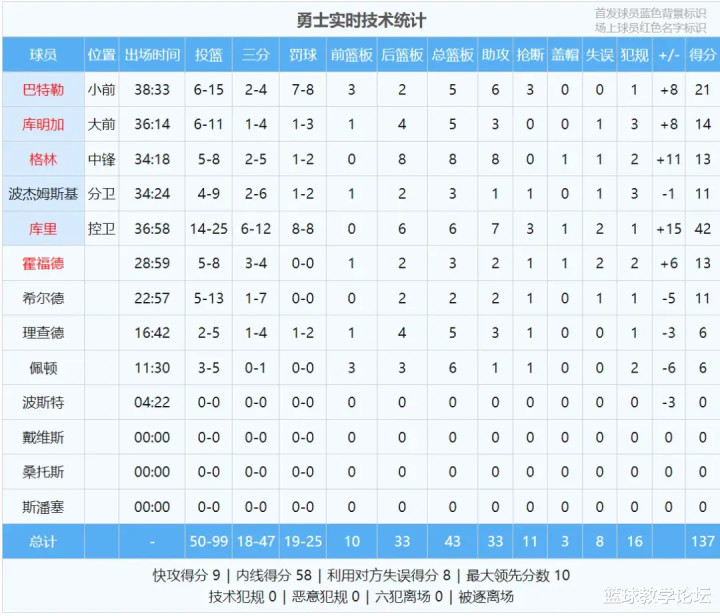 Đây là lần thứ 72 trong sự nghiệp Curry anh ghi được 40 điểm trở lên trong một trận đấu, đứng thứ hai trong số những người bảo vệ điểm NBA trong lịch sử, chỉ đứng sau Oscar Robertson (77 lần). Trước tiên, chúng ta hãy xem số liệu thống kê của trận đấu này: