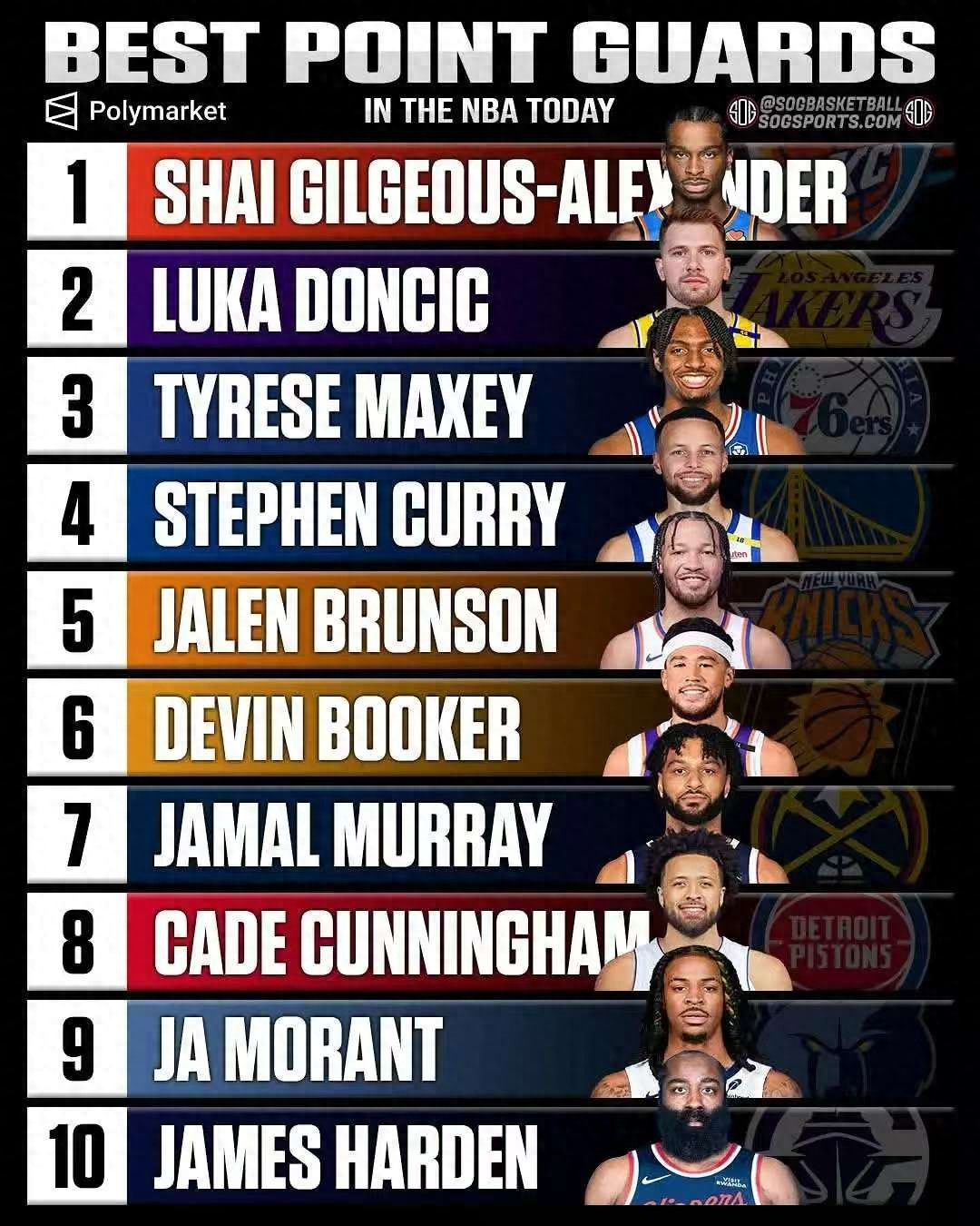 Mười vị trí bảo vệ điểm hàng đầu là: 1. Alexander, 2. Doncic, 3. Maxi, 4. Curry, 5. Brunson, 6. Booker, 7. Jamal Murray, 8. Cunningham, 9. Morant, 10. Harden. Có lẽ không còn nghi ngờ gì nữa, Alexander được xếp hạng đầu tiên. Anh ấy vẫn thể hiện ở cấp độ MVP trong mùa giải này và thành tích của đội vẫn đứng đầu giải đấu. Mặc dù Doncic đạt trung bình hơn 40 cú cận chiến gấp đôi mỗi trận nhưng tỷ lệ tham dự của anh ấy không tốt lắm.