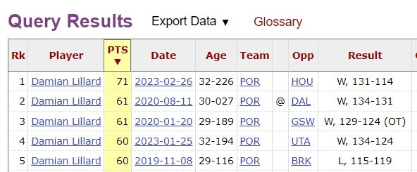Anh họ tôi đã ghi được hơn 40 điểm trong 60 lần trong sự nghiệp, trong đó có 5 trận đạt trên 60 điểm. Vào tháng 2 năm 2023, anh ghi được 71 điểm, 6 rebound và 6 kiến tạo vào lưới Rockets.