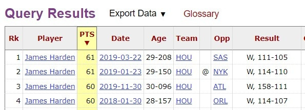 Người đàn ông có râu đã ghi hơn 40 điểm 106 lần trong sự nghiệp, trong đó có 4 trận đạt trên 60 điểm. Trong trận đấu với Magic vào tháng 1 năm 2018, anh ghi triple-double với 60 điểm, 10 rebound và 11 kiến tạo.