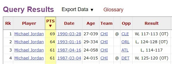 MJ đã ghi được hơn 40 điểm trong 173 lần, trong đó số điểm cao nhất là 69 điểm. Ngoài 69 điểm này, anh còn có hơn 60 điểm ba lần.